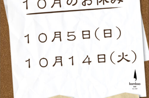 〜店舗移転のお知らせ〜 この度、新店舗への移転に伴い、 BAR bambooの営業は、5月31日で終了します。 移転先は、JR南柏駅東口より徒歩3分、 旧bambooの店舗になります。 再開の詳細については追ってご案内し…