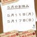 4月27日〜GW期間にて