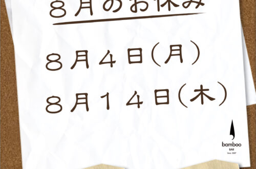 〜店舗移転のお知らせ〜 この度、新店舗への移転に伴い、 BAR bambooの営業は、5月31日で終了します。 移転先は、JR南柏駅東口より徒歩3分、 旧bambooの店舗になります。 再開の詳細については追ってご案内し…